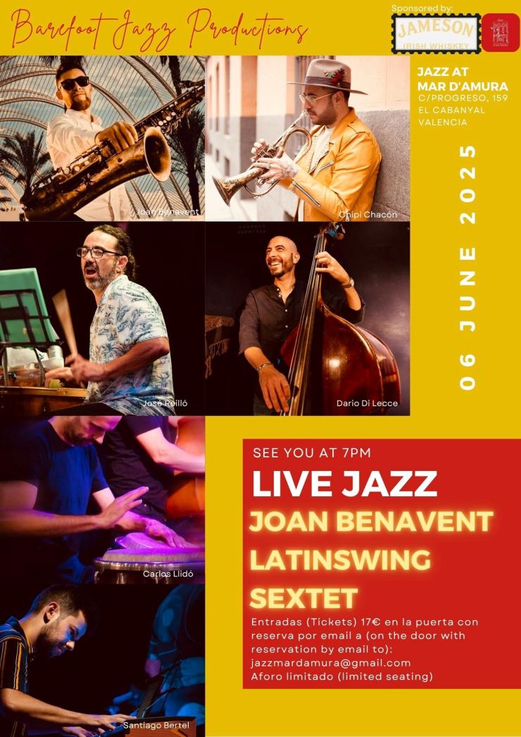 Recuerda, 6 de junio a las 19:30 h en Mar d’Amura, ubicado en calle Progrés 159, barrio de El Cabañal. Las entradas tienen un precio de 17 €, disponibles en puerta o mediante reserva previa escribiendo a jazzmardamura@gmail.com. Aforo limitado.