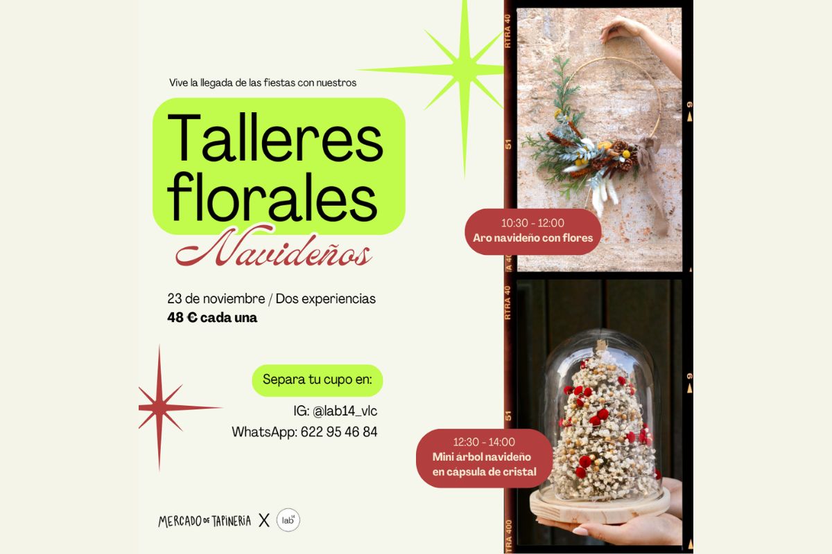 La primera sesión será de 10:30 a 12:00 h, donde podrás crear un aro navideño con flores. Y la segunda, de 12:30 a 14:00 h, en la que construirás un mini árbol de Navidad dentro de una cápsula de cristal.