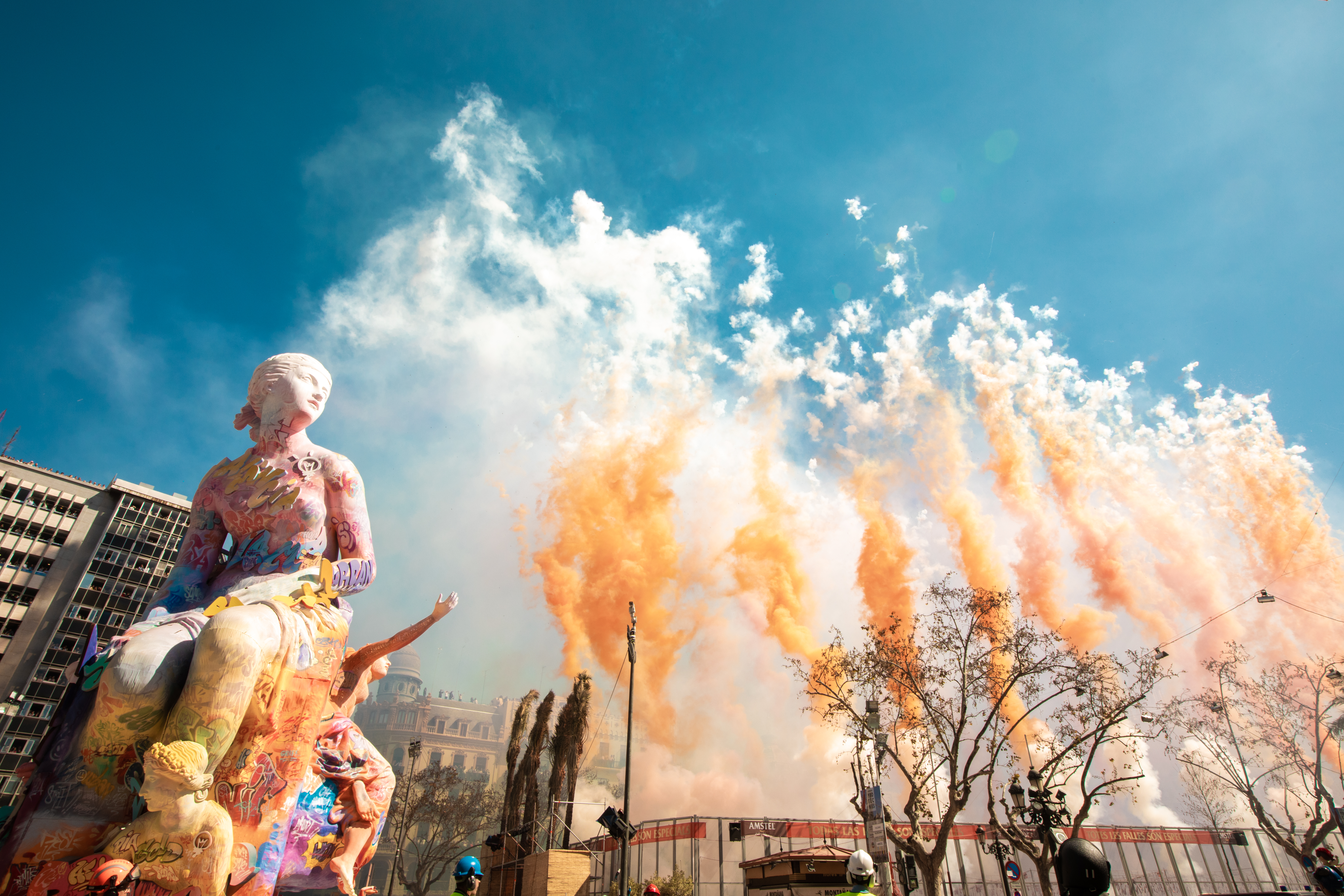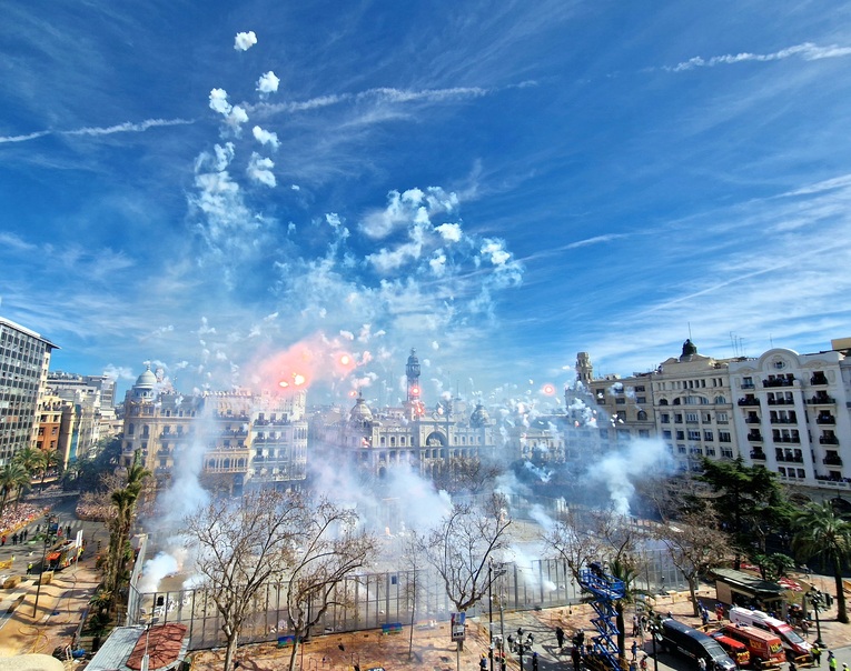 Die Wahrheit ist, dass das Wort 'vibrieren' nicht ausreicht, nein, bei weitem nicht ausreicht. Was auf dem Rathausplatz von Valencia jeden Tag zwischen dem 1. und dem 19. März um 14:00 Uhr passiert, ist ein sensorisches und soziales Phänomen, das weltweit Anhänger hat.