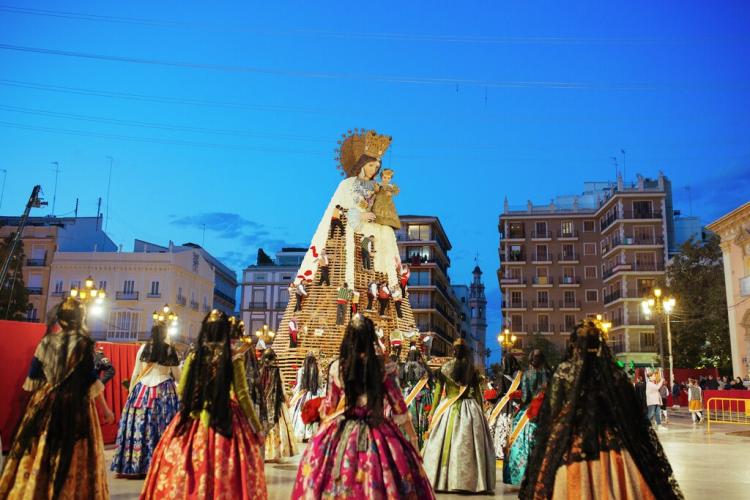 En zo komen we bij de meest ontroerende ceremonie: de bloemenhulde die elke 17e en 18e maart wordt gebracht aan de maagd Virgen de los Desamparados, de patroonheilige van Valencia. De falleros kleden zich in hun beste kleren, de meest traditionele kostuums en lopen door de straten van Valencia met boeketten op het ritme van de muziek van lokale bands. De tocht eindigt op de Plaza de la Virgen, waar een gigantisch beeld van de patroonheilige is geïnstalleerd en haar mantel met bloemen wordt bedekt.
