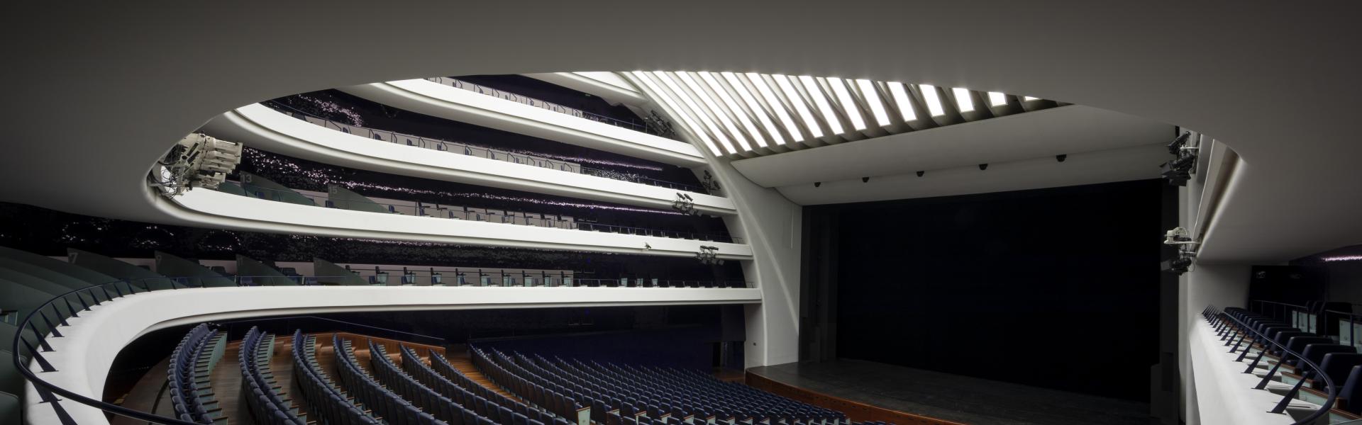 Una programación de primer rango artístico, encaminada a ofrecer una visión global que, a partir de la música y en torno a ella, abarque otras disciplinas artísticas y culturales. Cuenta con un escenario de más de 1.500 m2, incorporando la tecnología más avanzada para albergar cualquier espectáculo operístico, musical y escénico como plataformas móviles, escenarios intercambiables y traducciones simultáneas a través de pantallas en las propias butacas.