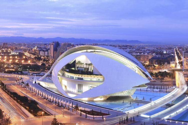 Se trata del último y más espectacular de los edificios de la Ciudad de las Artes y las Ciencias. Ha sido concebido como un centro cultural global, capaz de acoger ópera, danza, conciertos al aire libre…