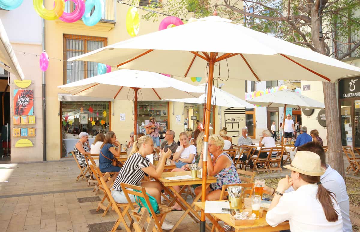 Hi ha parades, terrasses i espais gastro per a donar i vendre, en els quals trobaràs begudes de tota classe com ara vi, cervesa, granissats i també vertaderes delícies.